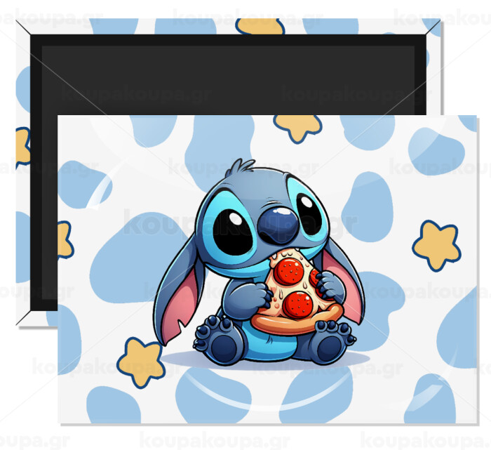Stitch Pizza, Ορθογώνιο μαγνητάκι ψυγείου διάστασης 9x6cm