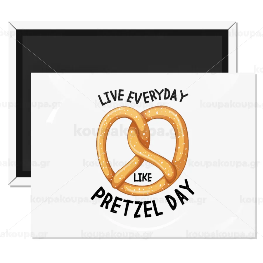 The office, Live every day like pretzel day, Ορθογώνιο μαγνητάκι ψυγείου διάστασης 9x6cm