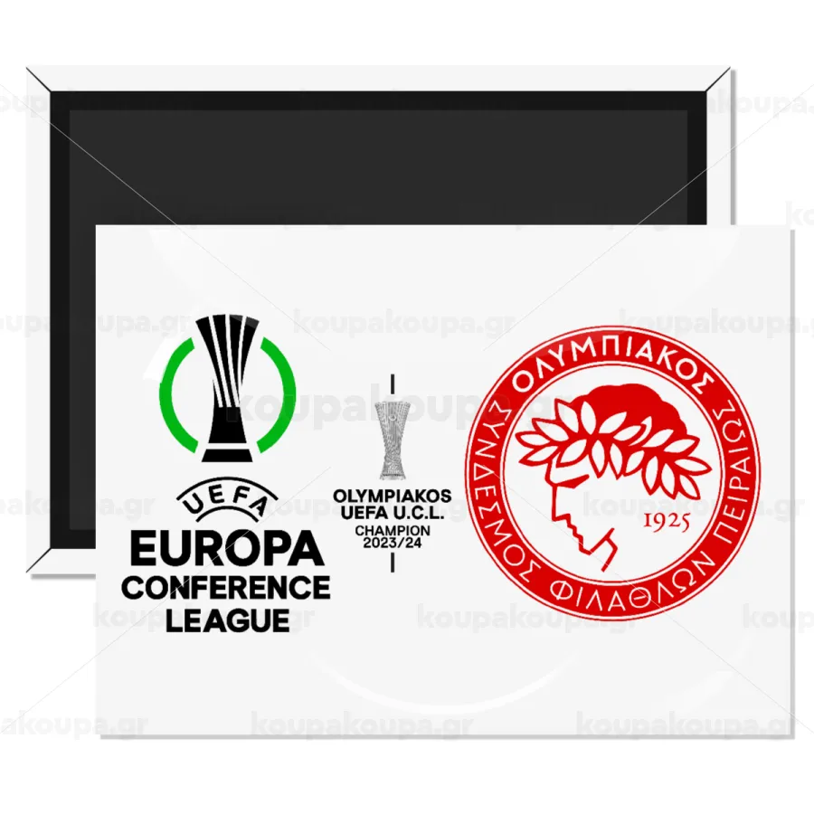 Ολυμπιακός νικητής UEFA Europa Conference League Champion 2023/24, Ορθογώνιο μαγνητάκι ψυγείου διάστασης 9x6cm