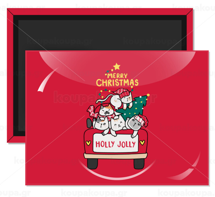Merry Christmas cats in car, Ορθογώνιο μαγνητάκι ψυγείου διάστασης 9x6cm