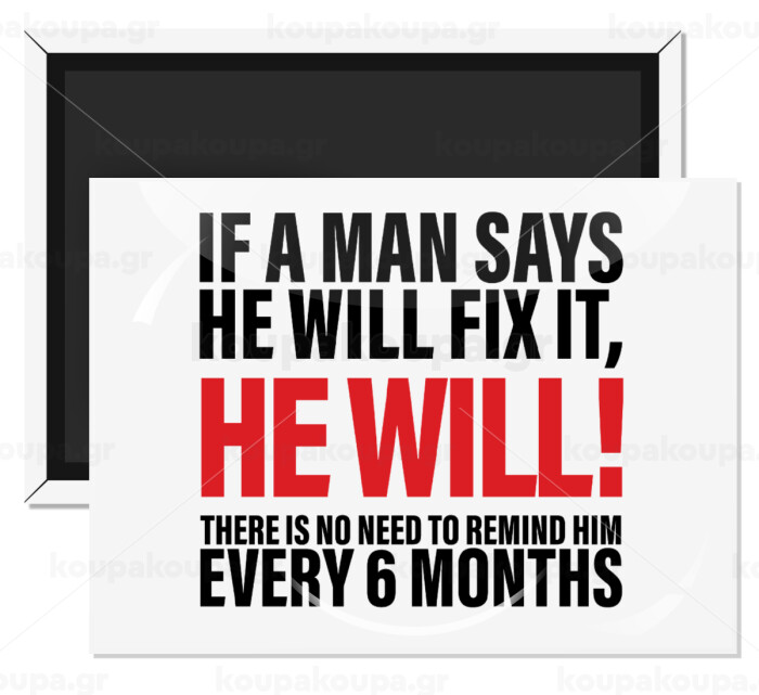 If a man says he will fix it He will There is no need to remind him every 6 months, Ορθογώνιο μαγνητάκι ψυγείου διάστασης 9x6cm