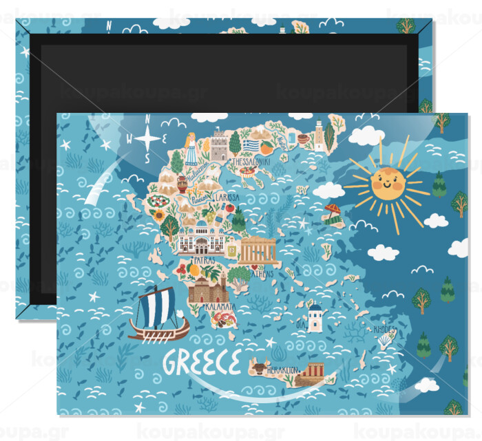 Χάρτης Ελλάδος, Ορθογώνιο μαγνητάκι ψυγείου διάστασης 9x6cm