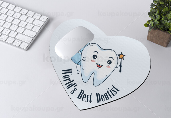 World's Best Dentist, Mousepad καρδιά 23x20cm