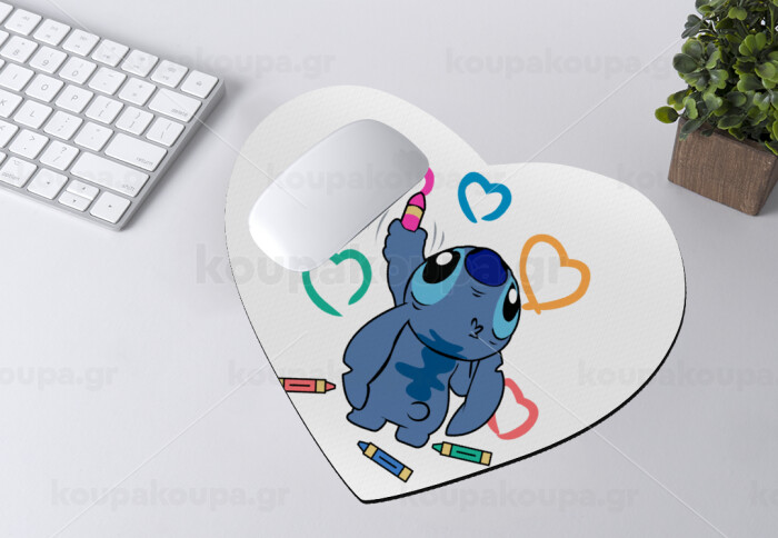Lilo & Stitch painting, Mousepad καρδιά 23x20cm
