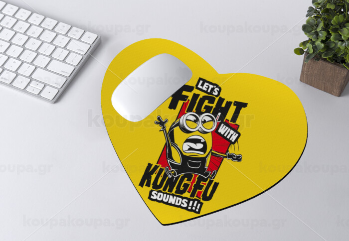 Minions Let's fight with kung fu sounds, Mousepad καρδιά 23x20cm