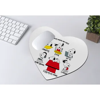 Snoopy what makes my happy, Mousepad καρδιά 23x20cm