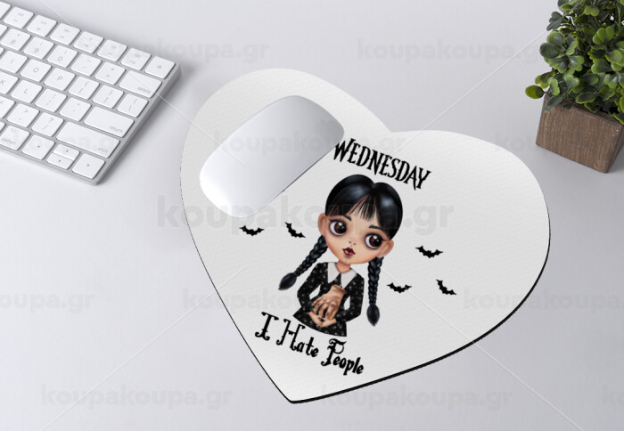 Wednesday Adams, i hate people, Mousepad καρδιά 23x20cm