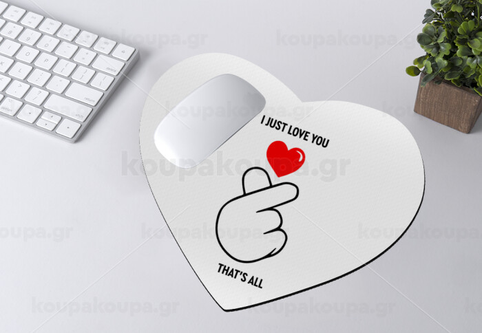 I just love you, that's all., Mousepad καρδιά 23x20cm