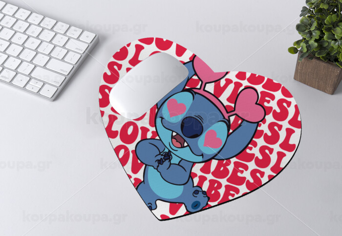 Lilo & Stitch Love vibes, Mousepad καρδιά 23x20cm