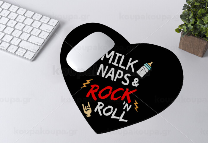 milk naps and Rock n' Roll, Mousepad καρδιά 23x20cm