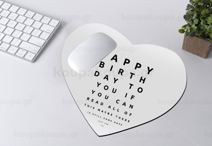 EYE tester happy birthday., Mousepad καρδιά 23x20cm