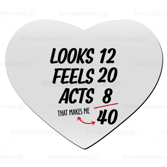 Looks, feels, acts LIKE your AGE, Mousepad καρδιά 23x20cm