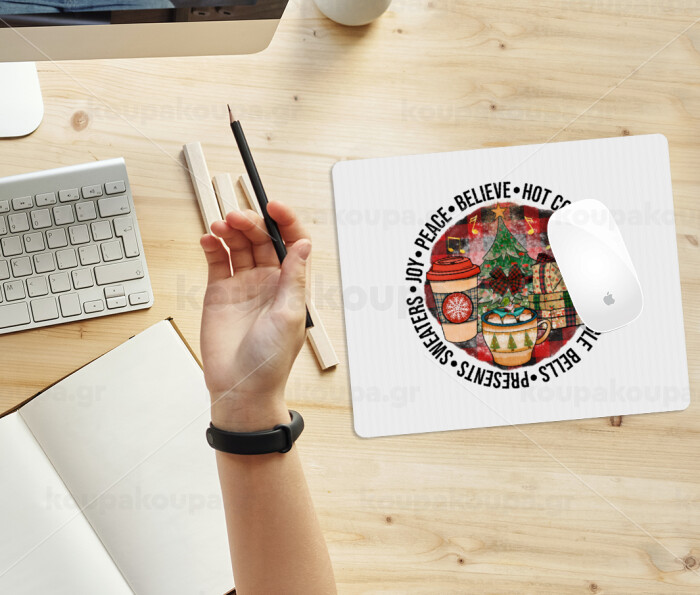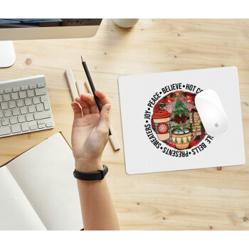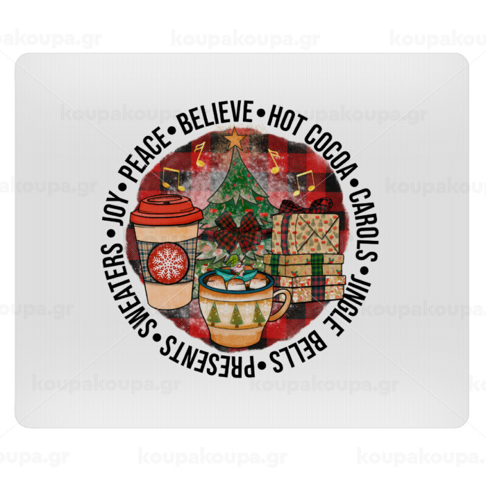 Joy, Peace, Believe, Hot Cocoa, Carols, Mousepad ορθογώνιο 23x19cm