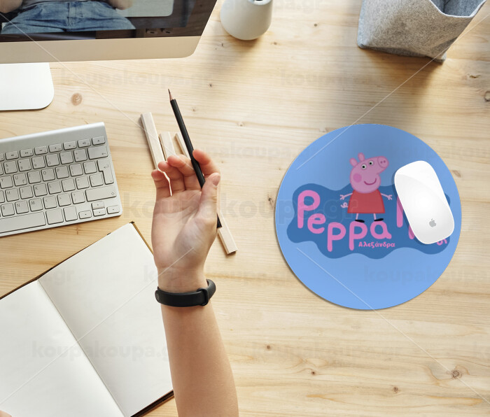 Πέππα το γουρουνάκι μπλε με όνομα, Mousepad Στρογγυλό 20cm