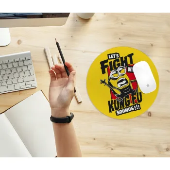 Minions Let's fight with kung fu sounds, Mousepad Στρογγυλό 20cm