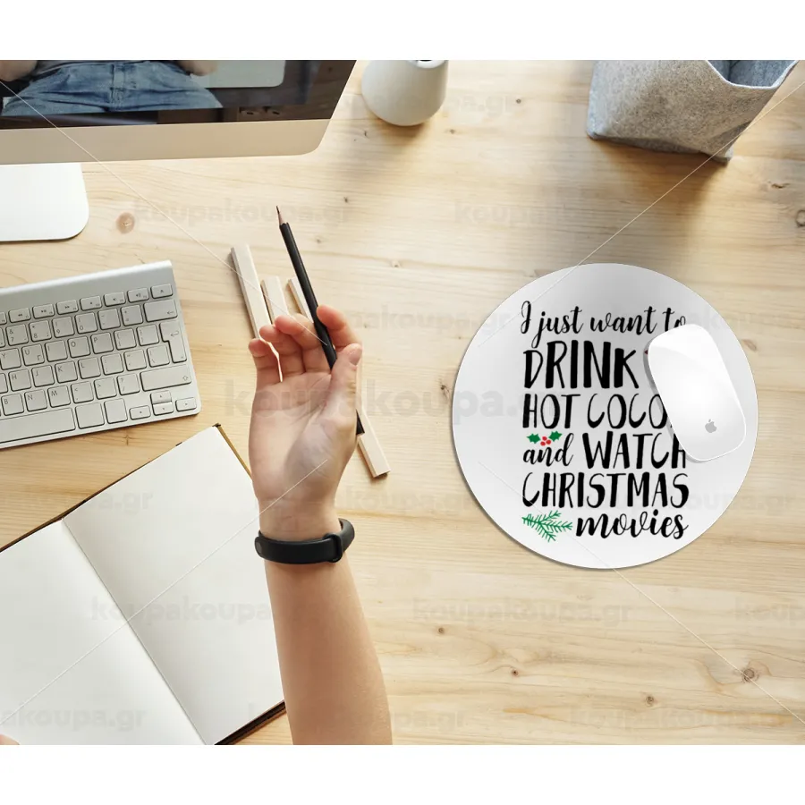 I just want to drink hot cocoa and watch christmas movies, Mousepad Στρογγυλό 20cm