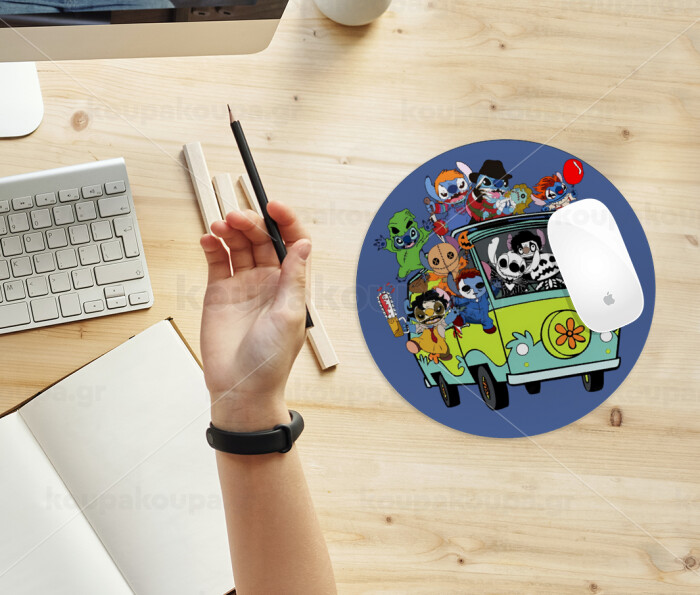 Stitch Halloween scooby car, Mousepad Στρογγυλό 20cm