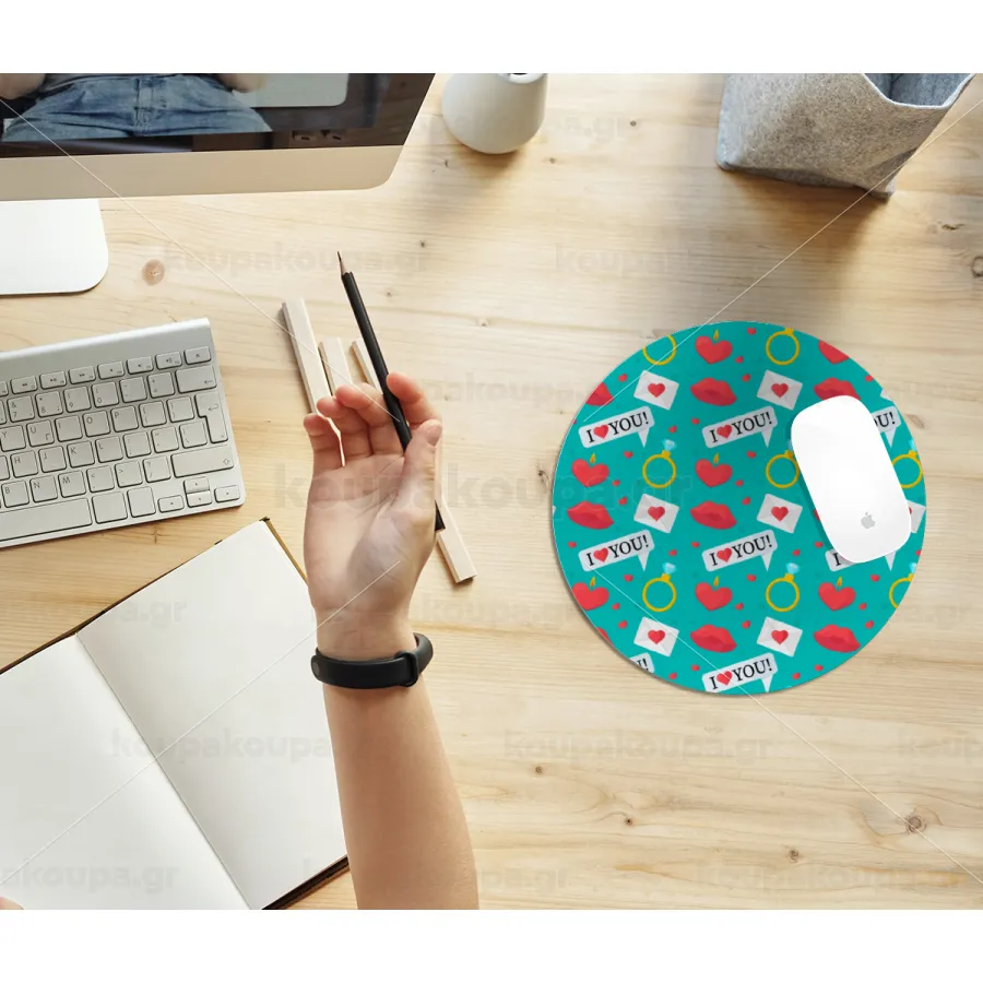I Love You hearts rings & kiss pattern, Mousepad Στρογγυλό 20cm