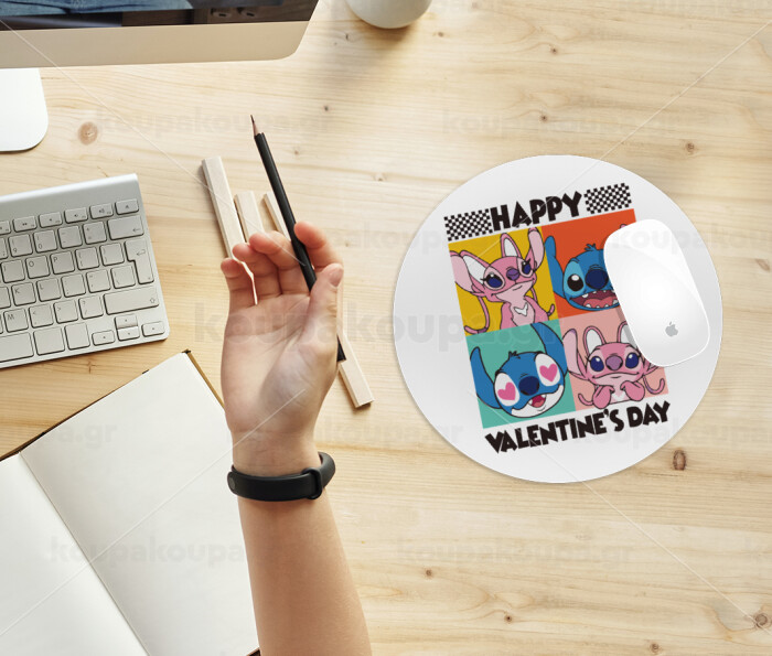 Lilo & Stitch Happy valentines day, Mousepad Στρογγυλό 20cm