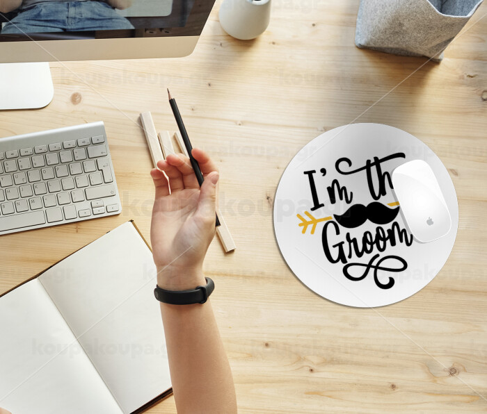 I'm the groom mustache, Mousepad Στρογγυλό 20cm