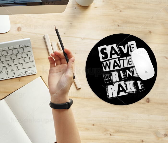 Save Water, Drink RAKI, Mousepad Στρογγυλό 20cm