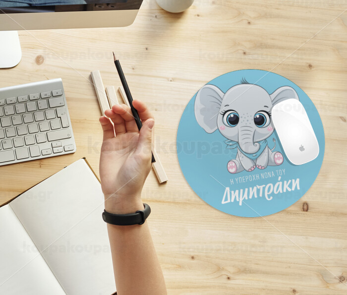 Η νονά μου, ελεφαντάκι γαλάζιο, Mousepad Στρογγυλό 20cm