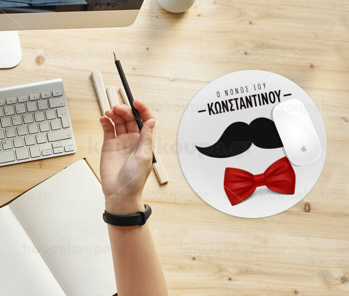 Ο νονός μου, μουστάκι με παπιγιόν, Mousepad Στρογγυλό 20cm