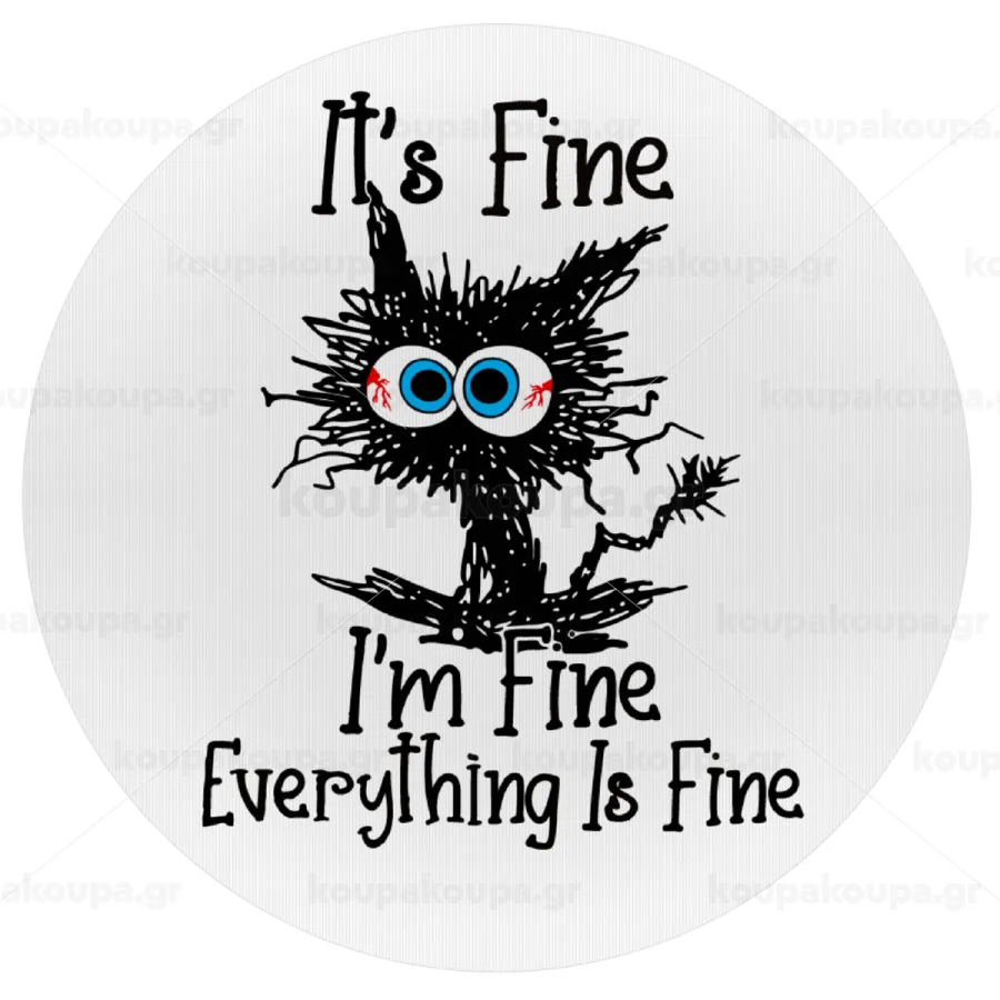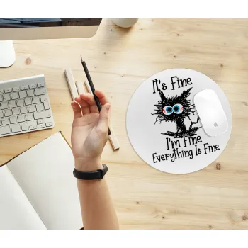 Cat, It's Fine I'm Fine Everything Is Fine, Mousepad Στρογγυλό 20cm