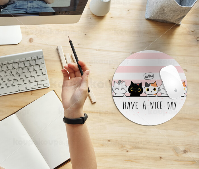 Have a nice day cats, Mousepad Στρογγυλό 20cm