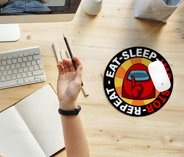 Among US Eat Sleep Repeat Impostor, Mousepad Στρογγυλό 20cm