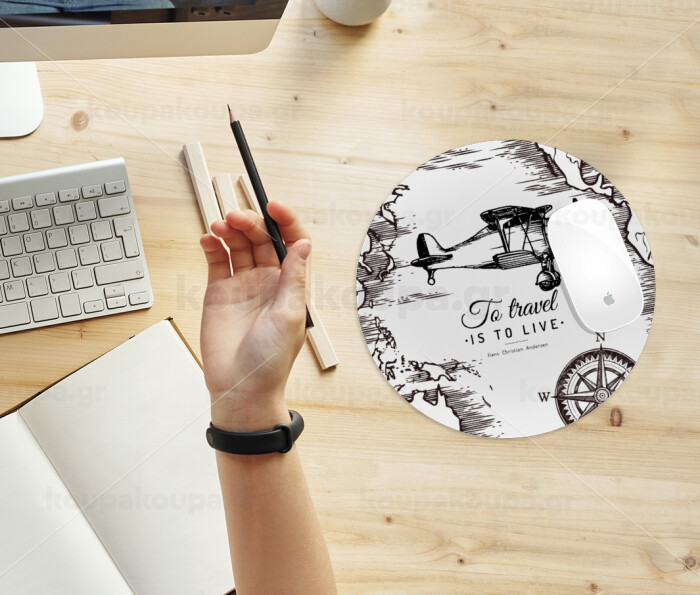 To travel is to live, Mousepad Στρογγυλό 20cm