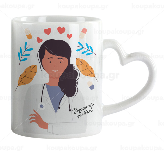 Ευχαριστώ για όλα γιατρέ, Κούπα καρδιά χερούλι λευκή, κεραμική, 330ml