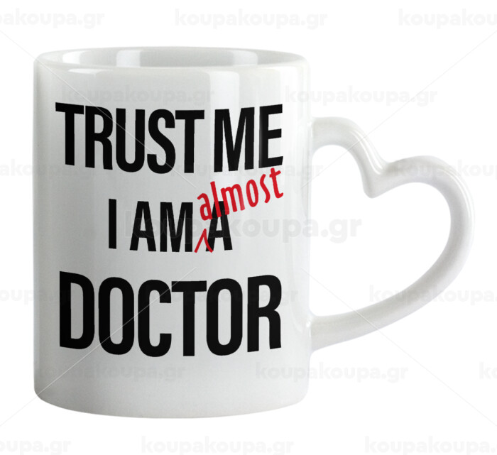Trust me, i am (almost) Doctor, Κούπα καρδιά χερούλι λευκή, κεραμική, 330ml
