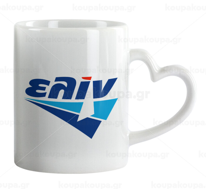 Πρατήριο καυσίμων ΕΛΙΝ, Κούπα καρδιά χερούλι λευκή, κεραμική, 330ml