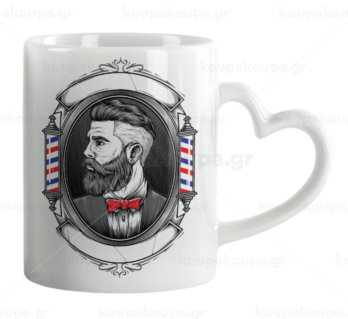 Barber shop, Κούπα καρδιά χερούλι λευκή, κεραμική, 330ml