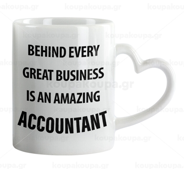 Behind every great business, Κούπα καρδιά χερούλι λευκή, κεραμική, 330ml