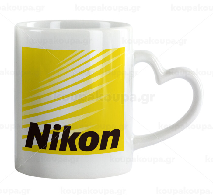 Nikon, Κούπα καρδιά χερούλι λευκή, κεραμική, 330ml
