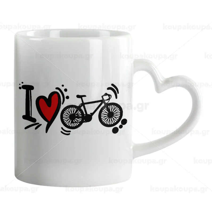 I love my bike, Κούπα καρδιά χερούλι λευκή, κεραμική, 330ml