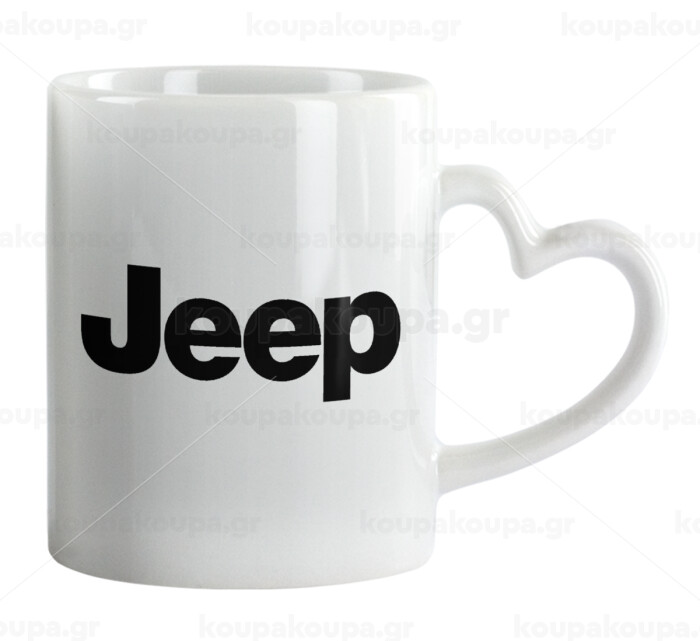 Jeep, Κούπα καρδιά χερούλι λευκή, κεραμική, 330ml