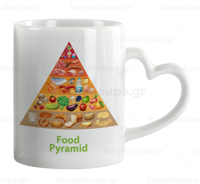 Διατροφική πυραμίδα, Κούπα καρδιά χερούλι λευκή, κεραμική, 330ml