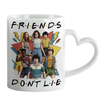 Friends Dont Lie, Stranger Things, Κούπα καρδιά χερούλι λευκή, κεραμική, 330ml