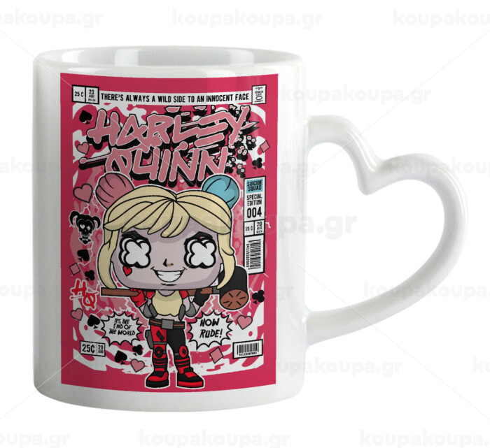 Harley Quinn (Χάρλεϊ Κουίν), Κούπα καρδιά χερούλι λευκή, κεραμική, 330ml