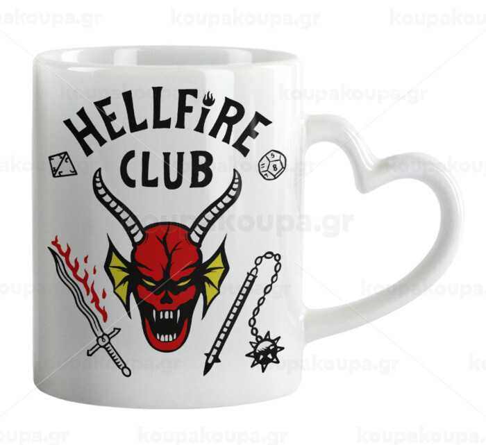 Hellfire CLub, Stranger Things, Κούπα καρδιά χερούλι λευκή, κεραμική, 330ml