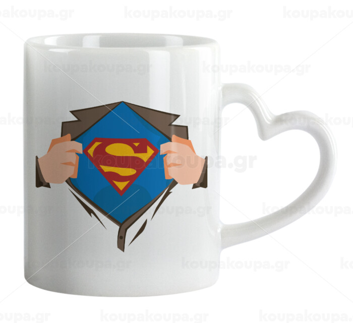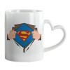 Superman hands, Κούπα καρδιά χερούλι λευκή, κεραμική, 330ml