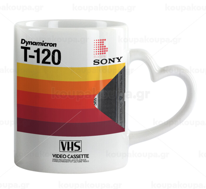 VHS sony dynamicron T-120, Κούπα καρδιά χερούλι λευκή, κεραμική, 330ml