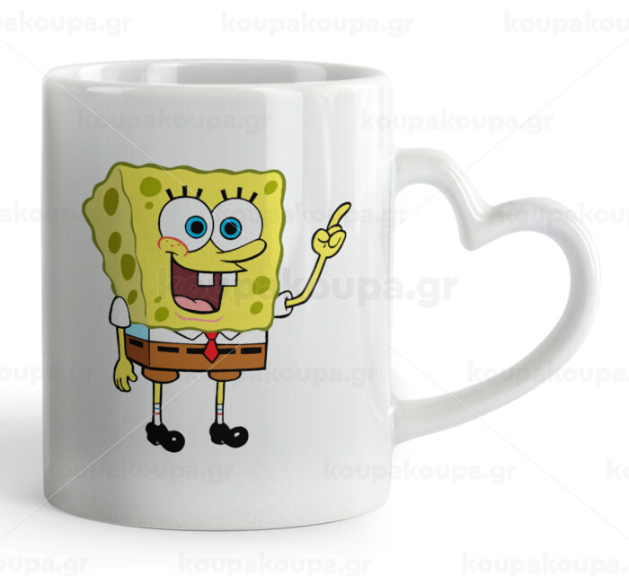 Μπομπ Σφουγγαράκης character, Κούπα καρδιά χερούλι λευκή, κεραμική, 330ml
