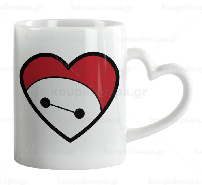 Baymax heart, Κούπα καρδιά χερούλι λευκή, κεραμική, 330ml