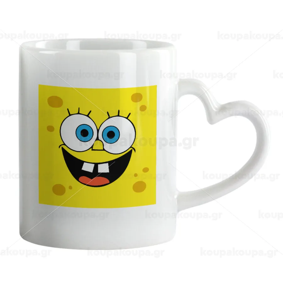 Μπομπ, Κούπα καρδιά χερούλι λευκή, κεραμική, 330ml