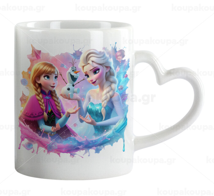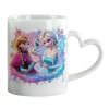 Έλσα & Άννα, Κούπα καρδιά χερούλι λευκή, κεραμική, 330ml
