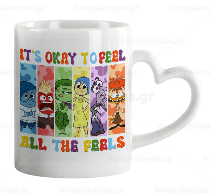 Inside Out It's Okay To Feel All The Feels , Κούπα καρδιά χερούλι λευκή, κεραμική, 330ml